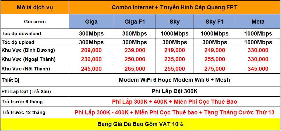 Bảng Giá Cước Combo FPT Hồ Chí Minh – Combo FPT Bình Dương