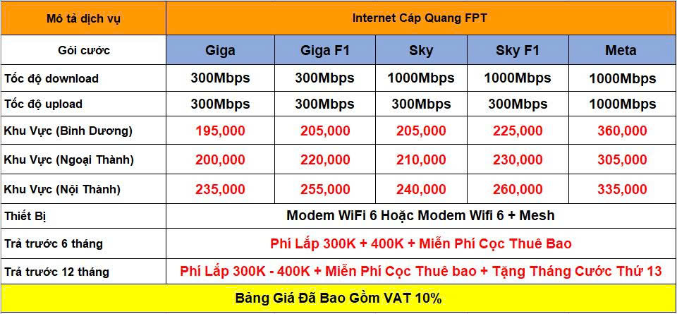 Bảng Giá Cước Cáp Quang FPT Hồ Chí Minh – FPT Bình Dương