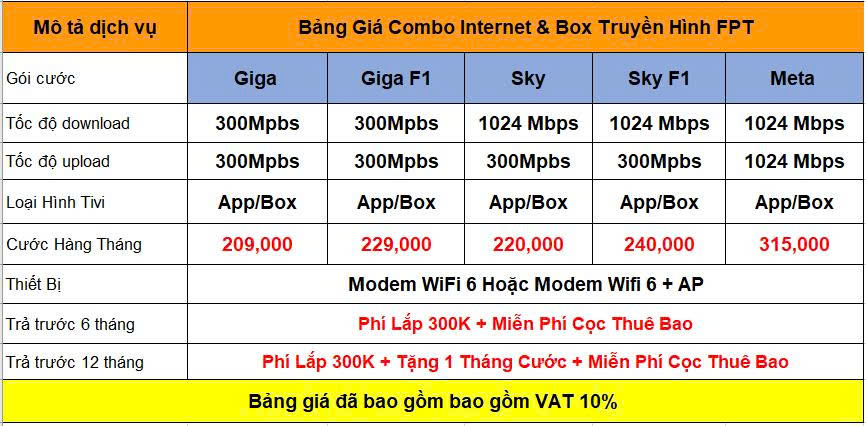 – Gói combo cơ bản: Internet + Truyền Hình 4K Ultra HD chỉ từ 210.000đ/Tháng
